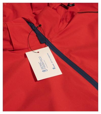 lightweight waterproof fabric with membrane, BIONIC FINISH® ECO finish preventing water penetration, cut fitted by side parts, waterproof zipper with chin protection, removable drawstring hood, sleeve hems adjustable by velcro, side pockets with reverse coil zipper, inner chest pocket with velcro, taped seams, access for branding in side lining, curved and slightly prolonged back part, the lower side hem with elastic band, ventilation at the back part, reflective elements