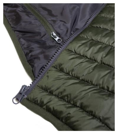 foldable into the inner pocket, lightweight quilted warm fabric , cut fitted by side parts, full-length molded zipper with chin protection, pockets with molded zipper, inner pocket with velcro, access for branding in side lining, trimmed by elastic stripe
