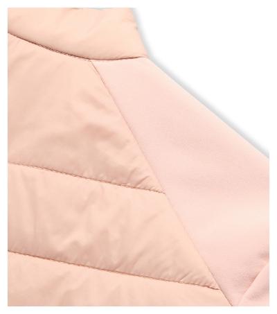 combination of quilted and softshell fabric, cut fitted by side parts, stand up collar with snap button, full-length coil zipper, side pockets with coil zipper, inner breast zip pocket , access for branding in back lining