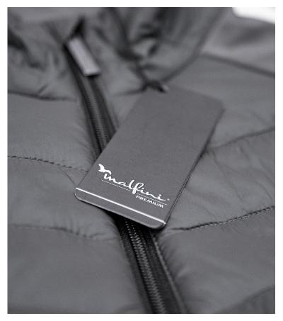 combination of quilted and softshell fabric, cut with side parts, full-length coil zipper with chin protection, side pockets with coil zipper, inner breast zip pocket , curved and slightly prolonged back part, access for branding in back lining