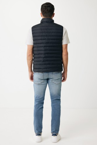 Men’s medium fit bodywarmer made from 100% post-consumer recycled polyester. The bodywarmer is fully quilted with 100% recycled polyester pearl filling. It has a reversed zipper at the front and practical zip pockets in the side panel seams. All zippers have extra zip pullers in matching colour for a refined look. The armholes have elastic binding and all seams at the inside are clean finished with recycled binding. Fluorine/PFAS free water repellent impregnation. The use of genuine recycled fabric materials and environmental impact claims are guaranteed, by using the AWARE™ disruptive physical tracer and blockchain technology. By scanning the QR code, you will gain access to a dedicated digital passport. 2% of proceeds of each sold product will be donated to Water.org. This product is OEKO-TEX® STANDARD 100 certified. The Meru bodywarmer is also available in women fit.