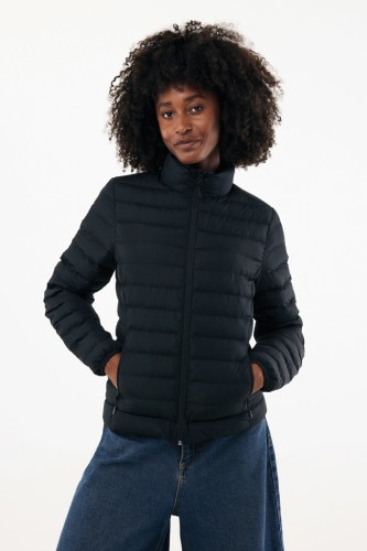 Women’s medium fit padded jacket made from 100% post-consumer recycled polyester. The jacket is fully quilted with 100% recycled polyester filling. It has a reversed zipper at the front and practical zip pockets in the side panel seams. All zippers have extra zip pullers in matching colour for a refined look. The cuffs have elastic binding and all seams at the inside are clean finished with recycled binding. Fluorine/PFAS free water repellent impregnation. The use of genuine recycled fabric materials and environmental impact claims are guaranteed, by using the AWARE™ disruptive physical tracer and blockchain technology. By scanning the QR code, you will gain access to a dedicated digital passport. 2% of proceeds of each sold product will be donated to Water.org. This product is OEKO-TEX® STANDARD 100 certified. The Maiko padded jacket is also available in men fit.