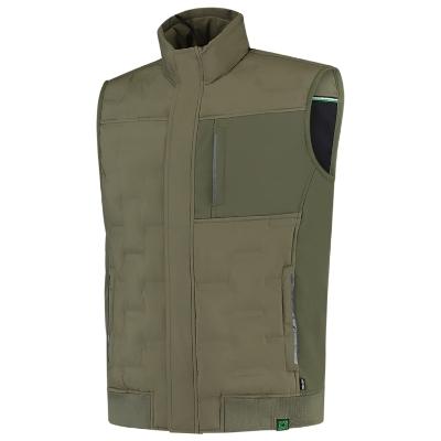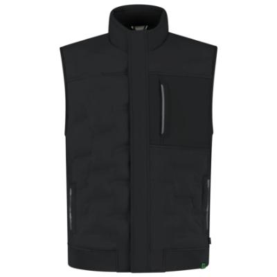 recycled polyester, wind-resistant and water-repellent fabric, modern puffer look, reflective print along the pocket entry and center back, straight cut with side seams, full-length zip with chin protection and storm flap lockable by concealed snaps, stand-up collar, sleeve lines slab-sided with an elastic strip, the left side of the chest is made from softshell fabric, ready for possible printing, zipped chest pocket, with ID loop from inside, welt zip pockets, YYK zip pockets, access for branding, rib knit bottom hem, Tricorp item number: 402710, AVAILABLE ON REQUEST TO OUR SALES DEPARTMENT
