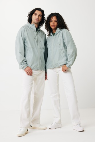 Unisex relaxed fit lightweight jacket made from 100% post-consumer recycled polyester in 70 G/M². The jacket has an adjustable hood with elastic string, a reversed zipper at the front and seam welt pockets. All zippers have extra zip pullers in matching colour for a refined look. The cuffs are fully elasticated. The back of the jacket is slightly longer and curved and the bottom hem has an elastic string and stoppers for better protection. Fluorine/PFAS free water repellent impregnation. The use of genuine recycled fabric materials and environmental impact claims are guaranteed, by using the AWARE™ disruptive physical tracer and blockchain technology. By scanning the QR code, you will gain access to a dedicated digital passport. 2% of proceeds of each sold product will be donated to Water.org. This product is OEKO-TEX® STANDARD 100 certified.