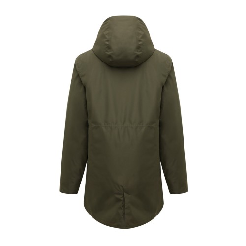 Unisex padded waterproof parka, made from 100% recycled polyester. The jacket is 4.000 mm waterproof, breathable and wind resistant. It has all features of a classic parka: longer back length, back slit, 2-way CF reversed zipper, covered by an extra front placket with four hidden snaps, clean sleeve cuffs with an extra inside half cuff, hood with stoppers at inside collar, horizontal deco seams. It is padded with 100% recycled polyester sheets and is lined with fine taffeta. On the inside there is a hidden zip at bottom hem and left wearer’s chest for easy decoration. Full garment is stitched with recycled polyester sewing thread. At back neck there is a tear-off size label with an iqoniq craft hangtag, care label at the left inside side seam. The use of genuine recycled fabric material and environmental impact claims are guaranteed, by using the AWARE™ disruptive physical tracer and blockchain technology. By scanning the QR code, you will gain access to a dedicated digital passport.