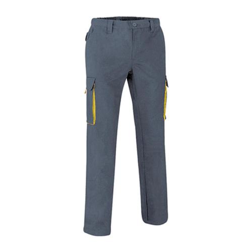 65% polyester, 35% cotton, 240 grs/m² twill fabric. Elastic waist in back . 2 waist pockets, 2 back flap pockets, 2 cargo lateral pockets. Button and zipper closure. Reinforced seams. Match with set Thunder (polo shirt, sweatshirt, vest). 20 units per box: 1 size, 1 color. Individual bag.