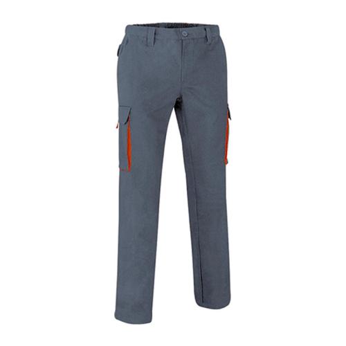 65% polyester, 35% cotton, 240 grs/m² twill fabric. Elastic waist in back . 2 waist pockets, 2 back flap pockets, 2 cargo lateral pockets. Button and zipper closure. Reinforced seams. Match with set Thunder (polo shirt, sweatshirt, vest). 20 units per box: 1 size, 1 color. Individual bag.