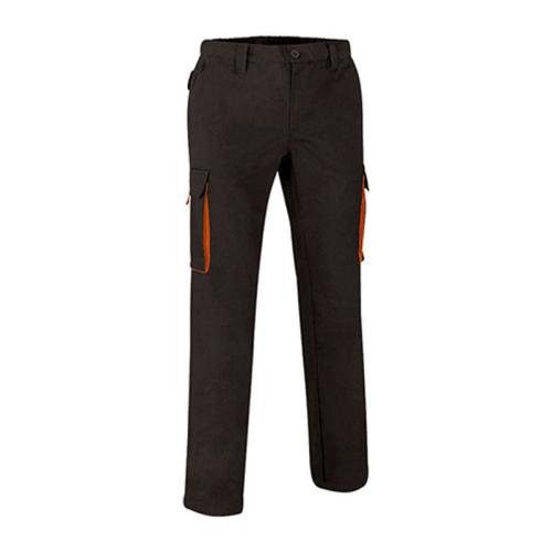 65% polyester, 35% cotton, 240 grs/m² twill fabric. Elastic waist in back . 2 waist pockets, 2 back flap pockets, 2 cargo lateral pockets. Button and zipper closure. Reinforced seams. Match with set Thunder (polo shirt, sweatshirt, vest). 20 units per box: 1 size, 1 color. Individual bag.