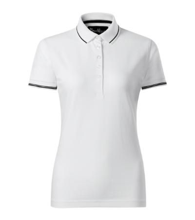 stretch fabric for better dimensional stability, slim fit cut with side seams, 1:1 rib knit collar and sleeve hems with a contrast stripe, narrow placket with 5 buttons in the shell fabric colour, slits in side seams with a contrast tape, inner neckline with a contrast tape, fixing shoulder seams