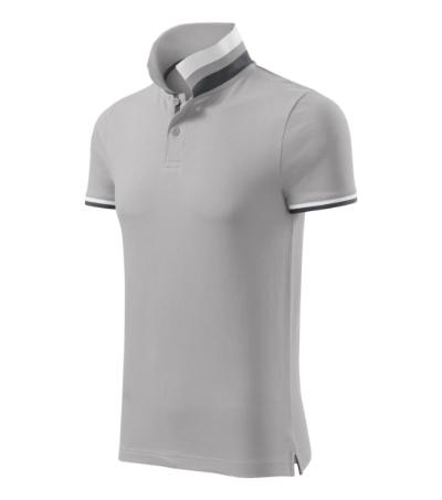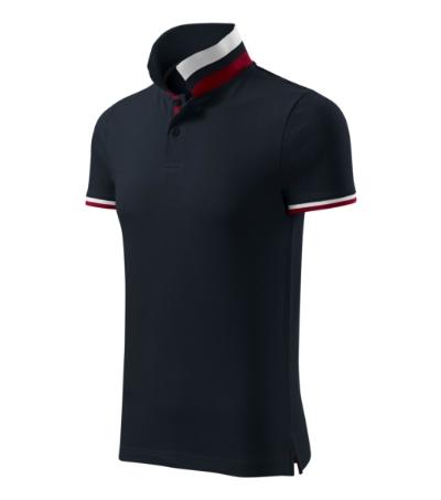 cut with side seams, 1:1 rib knit collar and sleeve hems, the lower collar part and sleeve hems with contrast stripes, placket with 2 buttons in the shell fabric colour, slits in the side seams and bottom placket with a contrast tape, inner neckline with a contrast tape, fixing shoulder seams