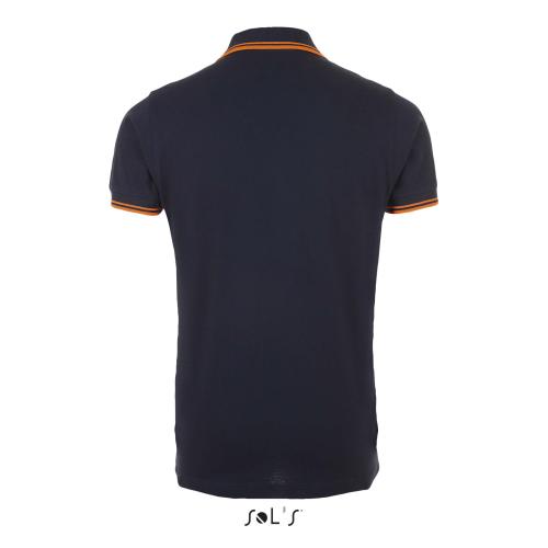 SOL'S PASADENA MEN,Men's Polo Shirt, 100% Ringspun cotton PIQUÉ 200, Rib 1x1 collar and cuffs, Reinforcing tape on neck, Short sleeves, Contrasting stripes on collar and cuffs, Tone on tone 3 button placket, Fitted cut, Cut and sewn, Side slits, Spare button on the inside seam, (1) Grey / Navy : 85 % cotton / 15 % viscose, (2) Grey melange / Orange : 85 % cotton / 15 % viscose. About sizes matching, please refer to the size chart in the product documentation section.