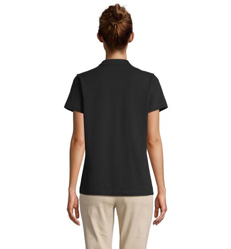 SOL'S PULSE WOMEN POLO, women's polo shirt, 100% ring-spun combed cotton, new fit, ribbed collar, neck tape, reinforced button placket, short sleeves, tone-on-tone 3-button placket, straight hem, cut and sewn, spare button on inside side seam. For size information, please refer to the size chart in the product documentation.