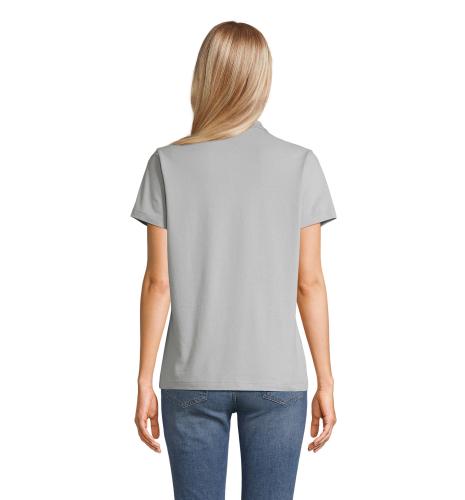 SOL'S PULSE WOMEN POLO, women's polo shirt, 100% ring-spun combed cotton, new fit, ribbed collar, neck tape, reinforced button placket, short sleeves, tone-on-tone 3-button placket, straight hem, cut and sewn, spare button on inside side seam. For size information, please refer to the size chart in the product documentation.