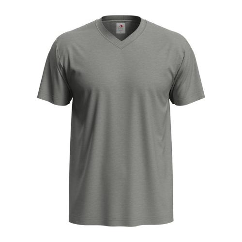 Classic V-neck style for men. Soft, without side seams and made of durable single jersey cotton.