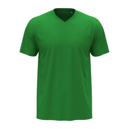Classic V-neck style for men. Soft, without side seams and made of durable single jersey cotton.