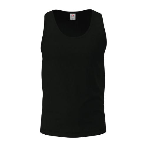 Soft tank top for men, without side seams, collar and arm holes with binding and made of durable single jersey cotton.