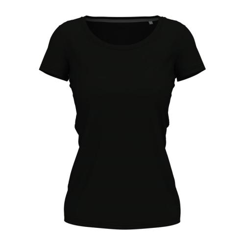 Fitted T-shirt for women, with fashionable length made of a soft and sleek cotton-elastane-blend with contrast neck tape.