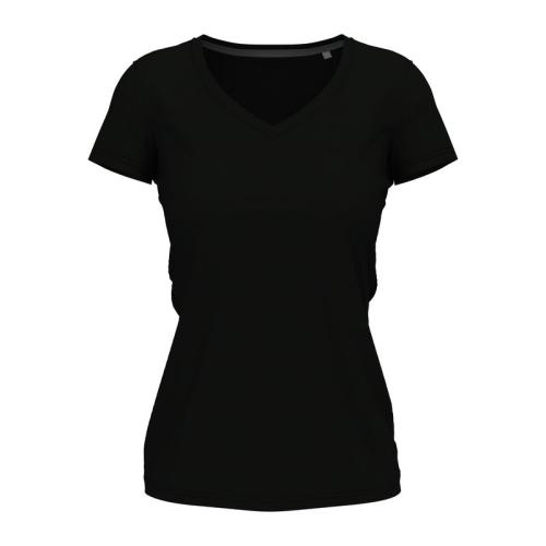 Fitted V-neck T-shirt for women, with fashionable length made of a soft and sleek cotton-elastane-blend with contrast neck tape.