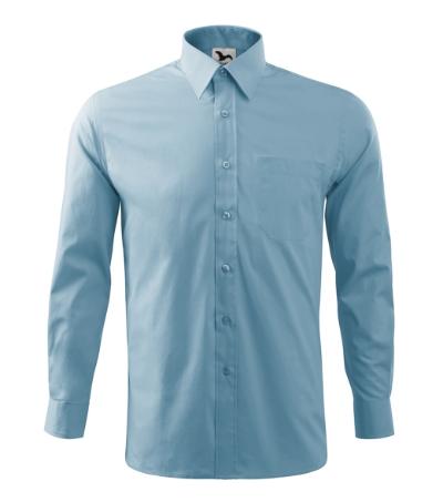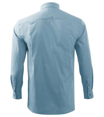 regular fit cut with side seams, back part with a double yoke and folds, two-piece shirt collar, front parts finished by placket, patch breast pocket, long sleeves with round cuffs and 1 button, buttons in the shell fabric colour (2 spare extra)