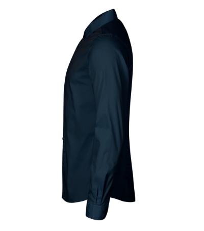 tailored fit cut with side seams, back part with a double yoke and darts, two-piece shirt collar, collar stays, front parts finished by placket, long sleeves with angled cuffs and 2 buttons, pearl buttons in the shell fabric colour (1 spare extra), curved bottom edge
