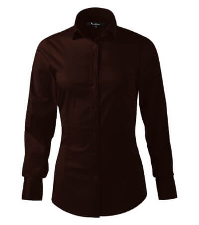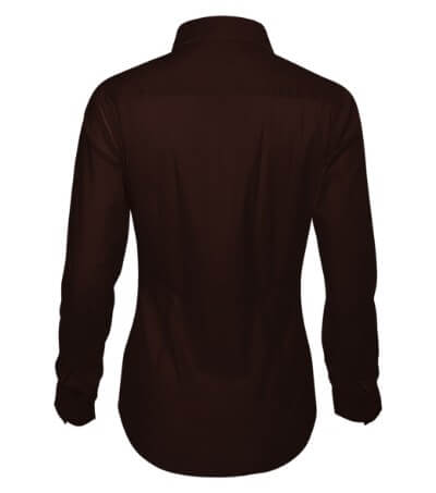 tailored fit cut with side seams, back part with a double yoke, breast and waist darts, two-piece shirt collar, front parts finished by placket, long sleeves with angled cuffs and 2 buttons, pearl buttons in the shell fabric colour (1 spare extra), curved bottom edge