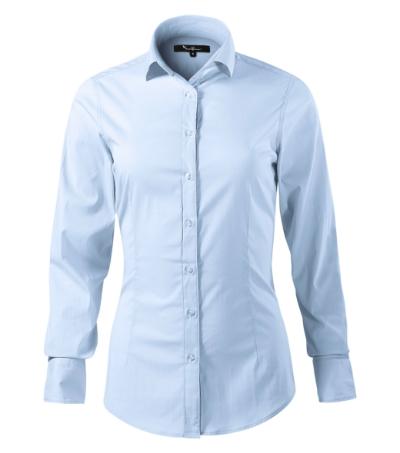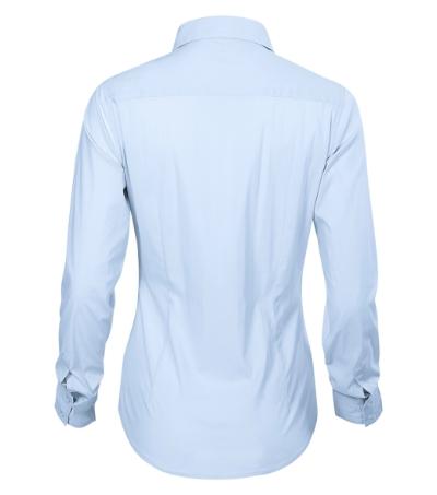tailored fit cut with side seams, back part with a double yoke, breast and waist darts, two-piece shirt collar, front parts finished by placket, long sleeves with angled cuffs and 2 buttons, pearl buttons in the shell fabric colour (1 spare extra), curved bottom edge