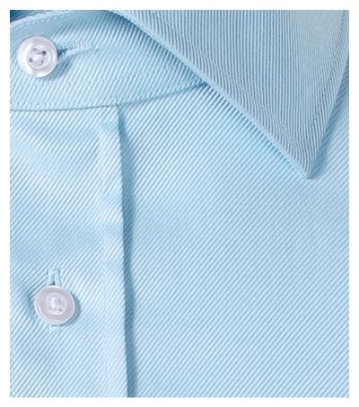 designed by leading czech tailor Roman Humlíček, yarn from extra long staple fibers, tailored fit cut with side seams, back part with a double yoke and darts, front part with waist darts, two-piece shirt collar, front parts finished by placket, long sleeves with round cuffs and 2 buttons, pearl buttons in the 00 colour (2 spare extra), curved bottom edge