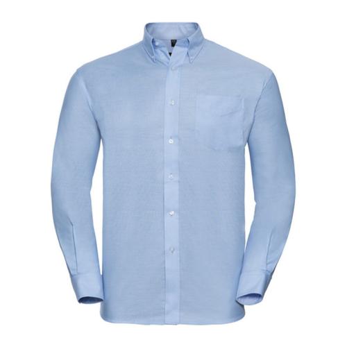 70% cotton, 30% polyester men's long-sleeved shirt. 40° washable, suitable for tumble drying, easy wear. Classic cut, button down collar, cuffs adjustable with 2 buttons, 1 button on the cuff gauntlet, replacement buttons, V-shaped tapered pocket on the left chest. 135g/m²