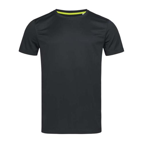 Modern and stretchy sports T-shirt for men made of quick-drying, breathable mesh-material. Contrast neck tape, decorative flatlock seams and excellent freedom of movement.