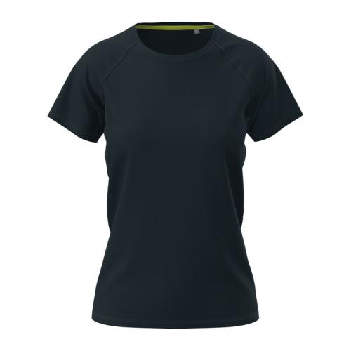 Modern and stretchy sports T-shirt for women, with raglan sleeves made of quick-drying, breathable mesh-material. Contrast neck tape, decorative flatlock seams and excellent freedom of movement.
