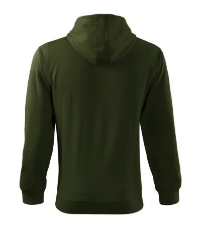 straight cut with side seams, full-length molded zipper, drawcord hood with lining, inner back neckline with a contrast tape, kangaroo patch pockets, 2:2 rib knit bottom hem and cuffs with 5 % elastane, brushed inner side