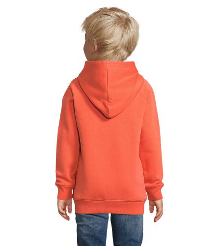 SOL'S STELLAR KIDS, KIDS' HOODED SWEATSHIRT, 80% organically grown cotton - 20% recycled polyester, 3 yarns , Brushed lining , Outside: 100% organic cotton FLEECE 280, Cut and sewn, Raglan sleeves, 2x2 ribbed cuffs and hem, Half moon inside collar, Neck tape, Jersey lined hood. About sizes matching, please refer to the size chart in the product documentation section.