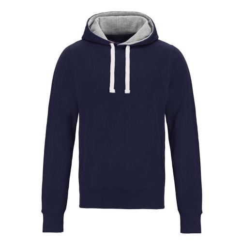 - Double fabric hood with heather grey waffle fabric inner