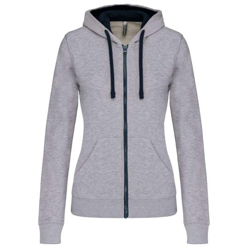 LADIES’ CONTRAST HOODED FULL ZIP SWEATSHIRT