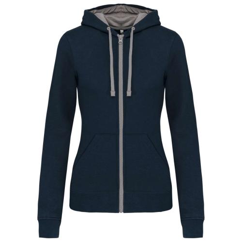 LADIES’ CONTRAST HOODED FULL ZIP SWEATSHIRT