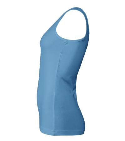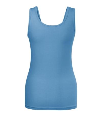 stretch fabric for better dimensional stability, slim fit cut with side seams, deeper round neckline, neckline and armholes trimmed with shell fabric, wider straps