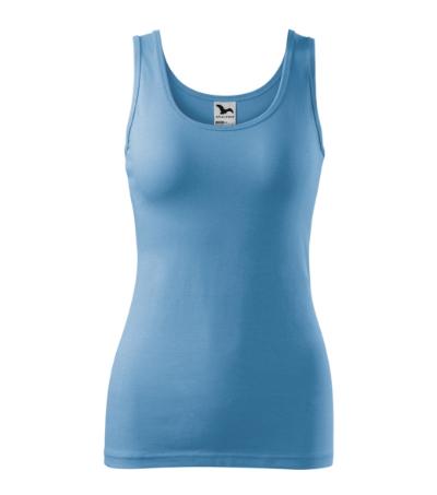 stretch fabric for better dimensional stability, slim fit cut with side seams, deeper round neckline, neckline and armholes trimmed with shell fabric, wider straps