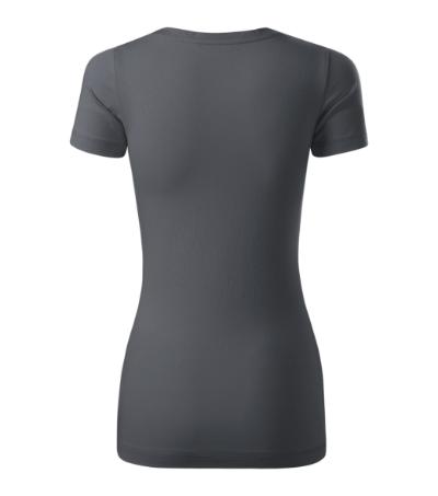 stretch fabric for better dimensional stability, slim fit cut with side seams, deeper round neckline, narrow 1:1 rib knit neckline hem with 5 % elastane, inner back neckline with a contrast tape, fixing shoulder seams, short fitting sleeves, decorative stitching