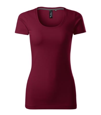 stretch fabric for better dimensional stability, slim fit cut with side seams, deeper round neckline, narrow 1:1 rib knit neckline hem with 5 % elastane, inner back neckline with a contrast tape, fixing shoulder seams, short fitting sleeves, decorative stitching
