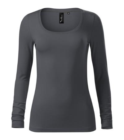 stretch fabric for better dimensional stability, slim fit cut with side seams, deeper round neckline, narrow 1:1 rib knit neckline hem with 5 % elastane, inner back neckline with a contrast tape, fixing shoulder seams, long sleeves