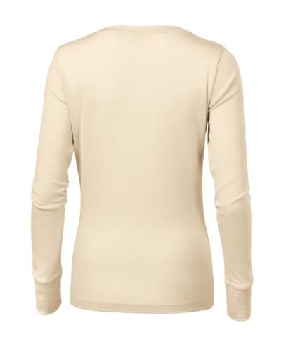 extra-fine merino wool, wrinkle-free and highly breathable fabric, thermoregulating and antibacterial features, the ability of moisture wicking and odor absorption, slim fit cut with side seams, deeper round neckline, narrow neckline hem from shell fabric, inner back neckline with a shell fabric tape, fixing shoulder seams, long sleeves with cuffs, drying horizontally recommended
