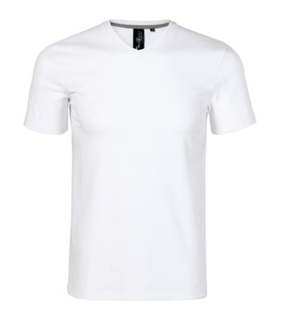 stretch fabric for better dimensional stability, slim fit cut with side seams, V-neckline, narrow 1:1 rib knit neckline hem with 5 % elastane, inner back neckline with a contrast tape, fixing shoulder seams