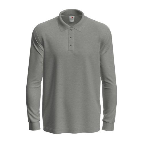 Soft single jersey long sleeve polo shirt for men, with a pleasing piqué look, rib collar, cuffs on sleeves and 3 tone-on-tone buttons.
