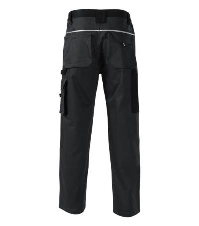 waistband with elastic sides, 7 multifunctional pockets, reinforced material in the knees and rear part, plastic D-ring and carabiner for keys and ID cards , hammer loop, double stitching for extra durability, retroreflective elements