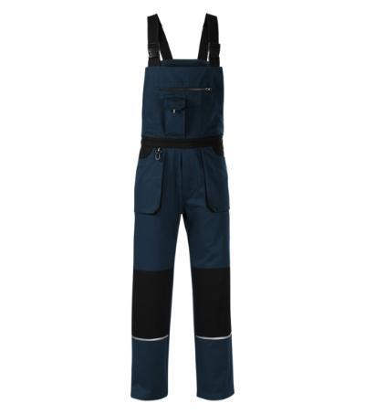 waistband with elastic back, button side closure, adjustable braces with buckle and elastic insert , 8 multifunctional pockets, reinforced material in the knees and rear part, plastic D-ring and carabiner for keys and ID cards , hammer loop, double stitching for extra durability, retroreflective elements
