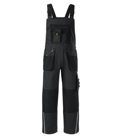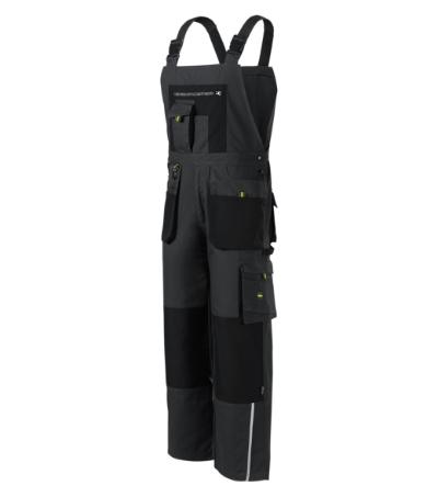 waistband with elastic back, button side closure, adjustable braces with buckle and elastic insert , 14 multifunctional pockets, reinforced material in the knee part, plastic D-ring and carabiner for keys and ID cards , hammer loop, double stitching for extra durability, highly resistant fabric in 01 colour, retroreflective elements