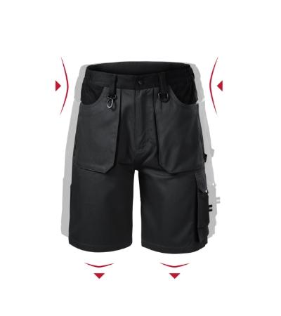 waistband with elastic sides, 7 multifunctional pockets, reinforced material in the rear part, plastic D-ring and carabiner for keys and ID cards , hammer loop, double stitching for extra durability, retroreflective elements, you can find the original cut of sizes S, M, L, XL, 2XL under product nr. WX5 in the OUTLET section