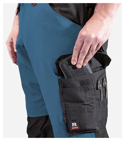 anti-soiling finish , curved elastic waistband, crotch gusset with 6 % elastane, 10 multifunctional pockets, knee pads pockets, back knee ventilation , plastic D-ring, hammer loop, highly resistant material in colour 01, contrast elements, pants can be lengthened, certification according to the standard EN ISO 13688, EN 14404 + A1 (type 2, level 1) in combination with knee pads A99