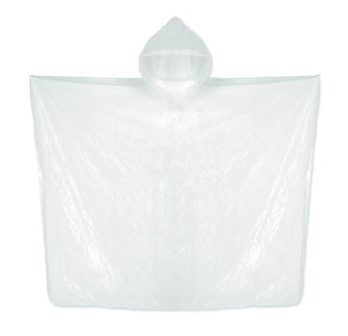 Foldable poncho with hood in biodegradable material and also packed biodegradable bag.