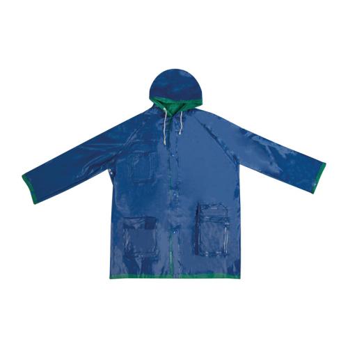 Bicolour reversible raincoat, made of PVC, in standard XL size with pushbuttons and hood.